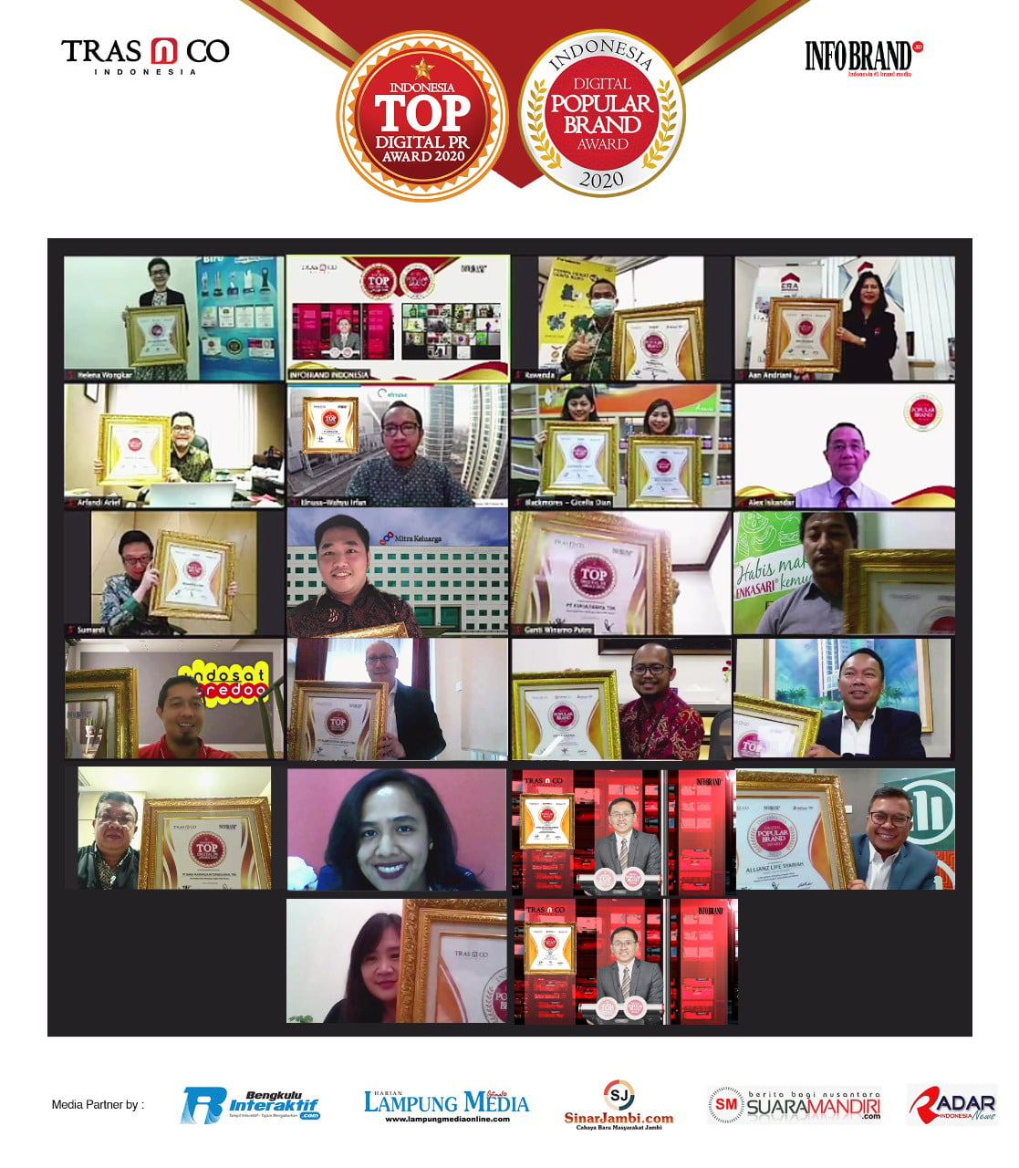 Untuk mengakomodir aktivitas digital yang telah dilakukan para pelaku brand, INFOBRAND.ID sebagai number one brand media, bekerjasama dengan FRANCHISEGLOBAL.COM sebagai portal bisnis Franchise, Lisensi dan Kemitraan, TRAS N CO Indonesia sebagai entitas yang kredibel dalam penelitian dan perkembangan brand di tanah air, serta IMFocus Digimarketing Consultant selaku Certified Google Partner, memberikan apresiasi yang setingi-tingginya, melalui INDONESIA DIGITAL POPULAR BRAND AWARD 2020 & TOP DIGITAL PUBLIC RELATIONS AWARD 2020.