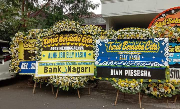 Karangan bunga ucapan Belasungkawa berdatangan dari rekan dan sahabat di Rumah duka Jl. Beton 68 – Kayu Putih, Jakarta Timur.