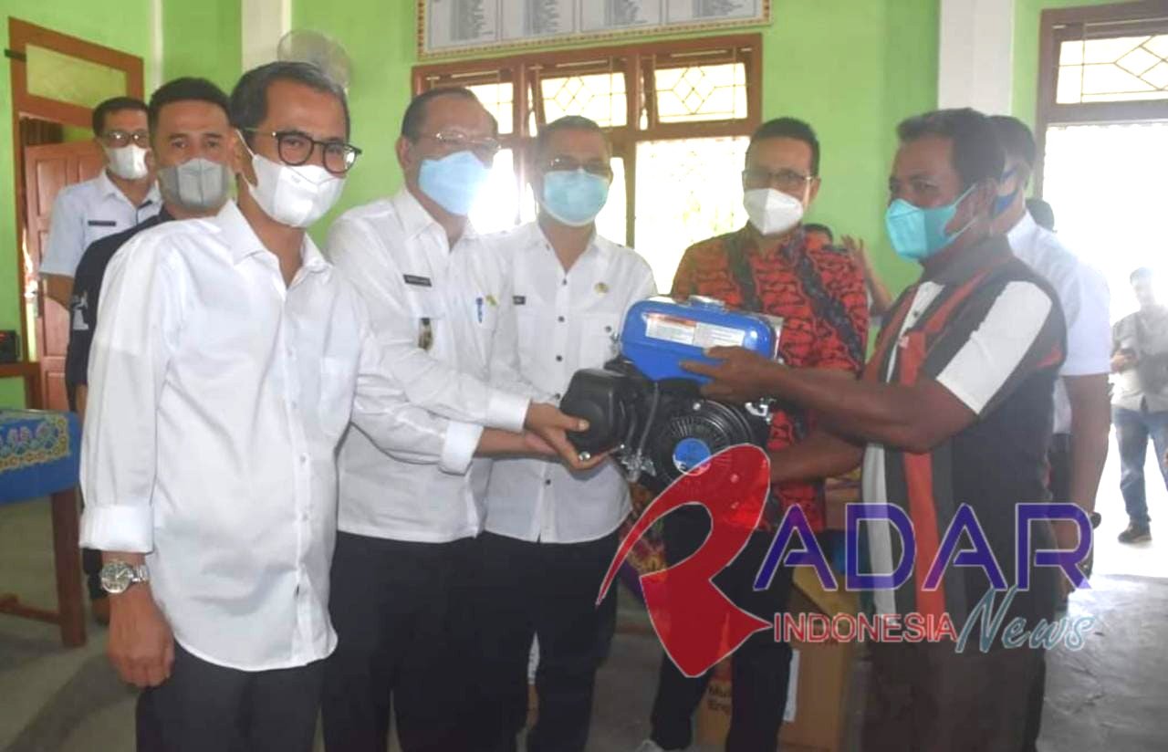 Usai menyampaikan arahan dan bimbingan, Bupati Nias menyerahkan secara simbolis bantuan mesin perahu kepada para nelayan.