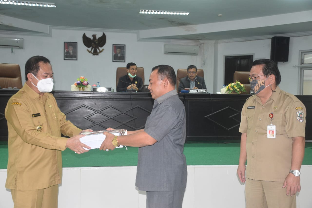“Pertanggungjawaban pelaksanaan APBD tahun anggaran 2020, yang merupakan laporan realisasi pelaksanaan APBD Kabupaten Nias untuk dibahas bersama DPRD Kabupaten Nias serta untuk memperoleh persetujuan penetapannya dalam Peraturan Daerah Kabupaten Nias,” ucap Bupati Nias mengawali penyampaian nota pengantar.