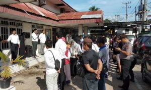 | Saat apel di halaman Kantor UP3 Nias yang dipimpin Manajer Rayon Gunungsitoli Cosinus Melvin S. Pane.[Albert/radarindonesianews.com] |