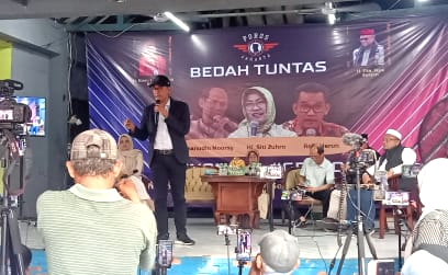 Diskusi tersebut dimoderatori oleh mantan pembawa acara Metro Realitas di Metro TV, Rahmah Sarita Al-Jufri, S.H yang kini tampil apik dengan balutan hijab.