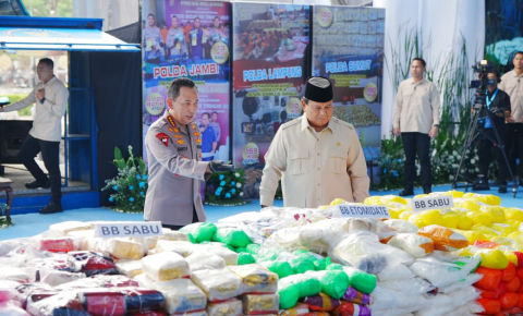 Pemusnahan barang bukti narkoba sebanyak 214,84 ton tersebut dihadiri langsung oleh Presiden Prabowo Subianto sekaligus memimpin pemusnahan barang haram tersebut di Lapangan Bhayangkara, Jakarta Selatan, Rabu (29/10/2025).