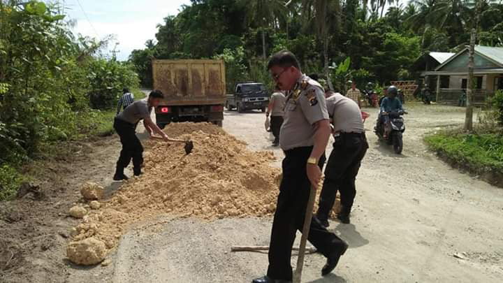 “Personil Polsek Lahewa hari ini harus mandi keringat menimbun jalan propinsi antara Kecamatan Lahewa dengan Lahewa Timur dimana jalan ini sudah lama rusak terabaikan apalagi pada waktu hujan,” tulis akun facebook Arius Zega II.