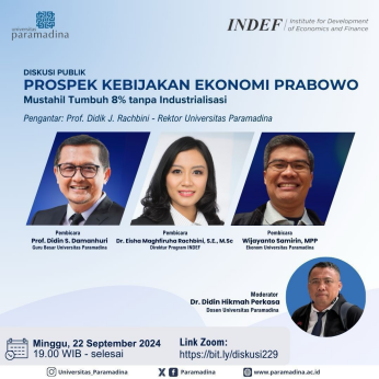 RADARINDONESIANEWS.COM, JAKARTA — Universitas Paramadina dan INDEF menggelar Diskusi Panel Dengan tema “Prospek Kebijakan Ekonomi Prabowo Mustahil Tumbuh 8% Tanpa Industrialisasi” melalui zoom, Ahad (22/9/24).