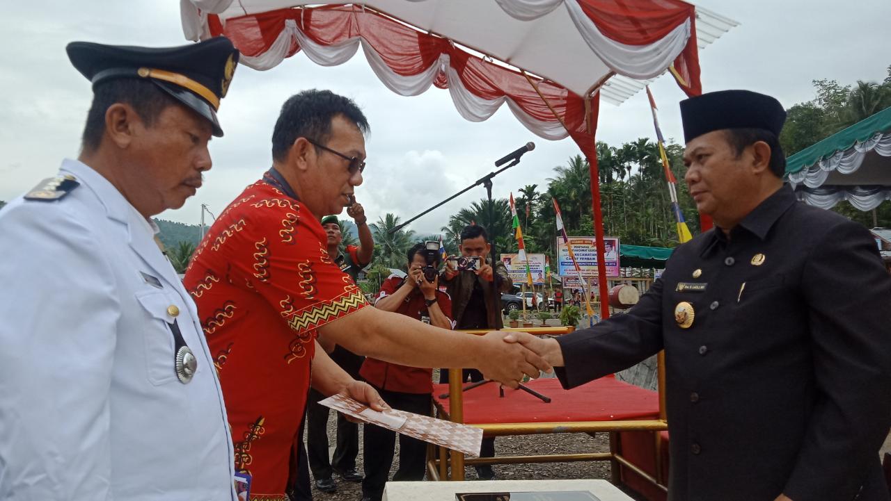 Pemerintah Kabupaten Nias serahkan bangunan Pasar Tradisional kepada Camat Ulugawo dan Gedung Puskesmas Kepada Kepala Puskesmas Ulugawo di lapangan upacara Kantor Kecamatan Ulugawo, Jumat (11/10).