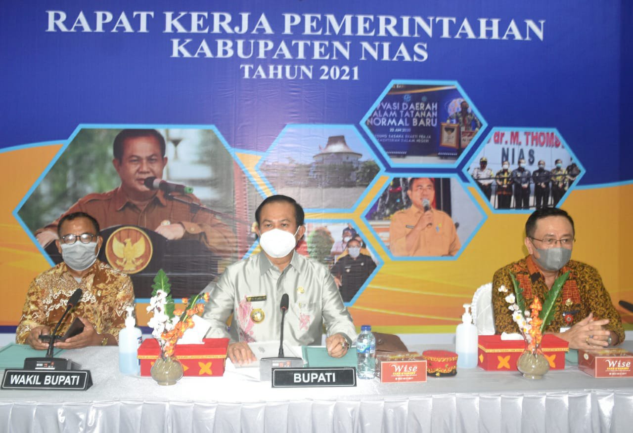 RADARINDONESIANEWS.COM, NIAS – Bupati Nias Drs. Sokhiatulo Laoli, MM pimpin rapat kerja Pemerintahan Kabupaten Nias untuk semester I tahun 2021 bertempat di lantai III Kantor Bupati Nias, Jumat (21/05).