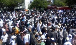 Dengan pengeras suara, Polisi meminta agar massa tidak berkumpul di pinggir jalan karena dapat mengganggu arus lalu lintas. Polisi juga meminta agar massa menggelar tablig akbar di masjid.