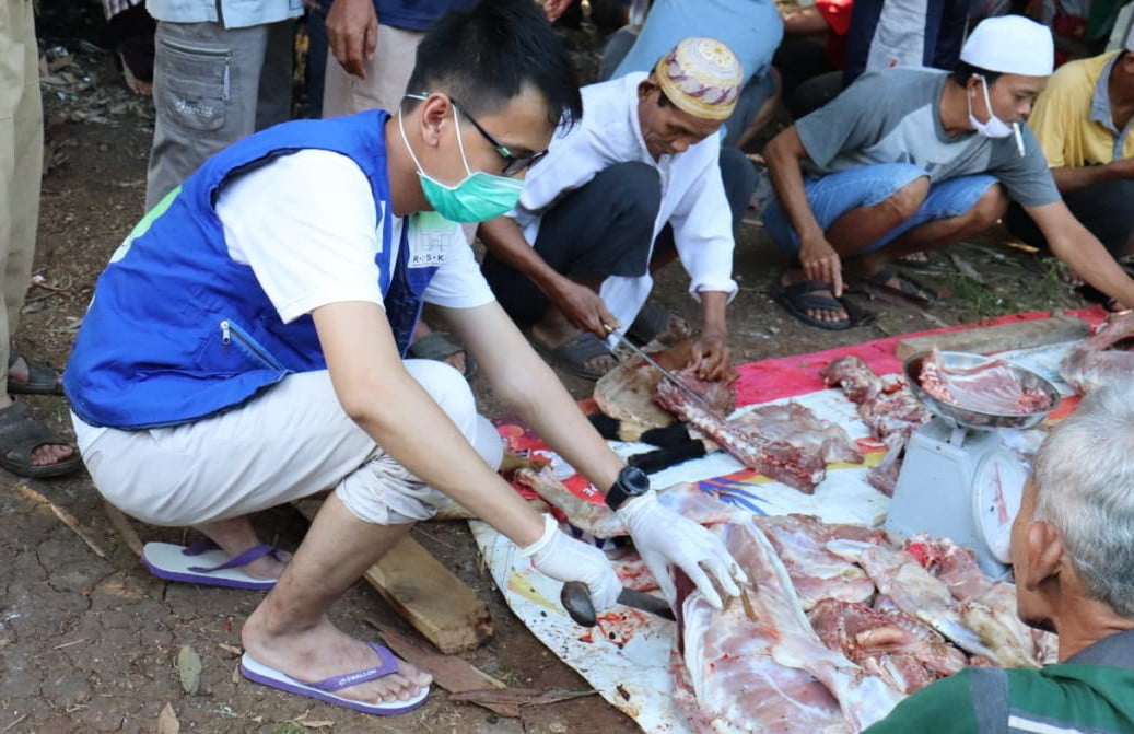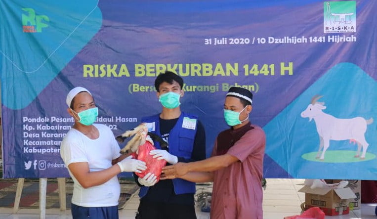 RADARINDONESIANEWS.COM, TANGSEL -— Remaja Islam Sunda Kelapa (RISKA) melalui Departemen RISKA Peduli menyalurkan 720 bantuan paket daging kurban untuk pesantren Ibtidaul Hasan dan warga dhuafa di Kampung Kabasiran Desa Karang Tengah Kecamatan Pagedangan, Kabupaten Tangerang, Jumat (31/7/2020).
