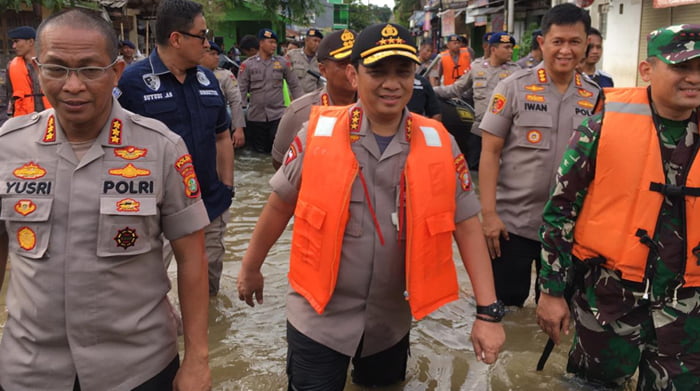 RADARINDONESIANEWS. COM,JAKARTA – Kapolda Metro Jaya Komjen Pol Gatot Eddy Pramono melakukan peninjauan lokasi banjir di Perumahan Ciledug Perumahan Indah 2, Tangerang, Banten.