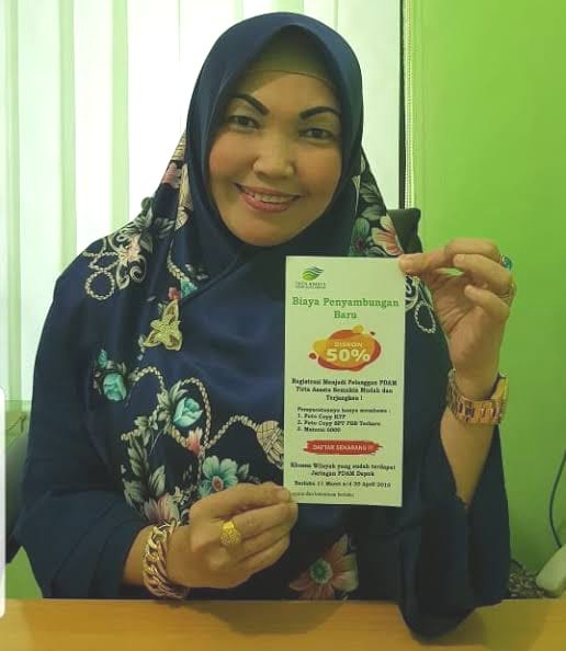 Sayapun berharap promo ini mendapat antusiasme yang tinggi dari masyarakat Kota Depok agar mau beralih dari penggunaan air tanah dan mulai berlangganan PDAM, tegas Imas. (Anggoro/Moer).