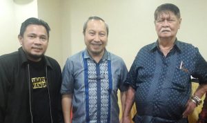 | Foto usai diskusi, dari kiri ke kanan: Heintje Mandagi, Laksdya TNI (Purn) Desi Mamahit, Hengky Luntungan |