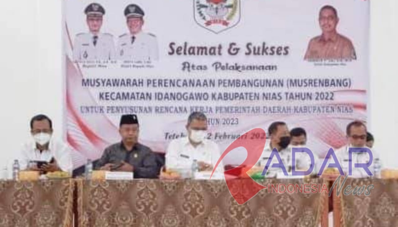 RADARINDONESIANEWS.COM, NIAS – Sekretaris Daerah Kabupaten Nias, Samson Zai menghadiri sekaligus membuka secara resmi Musyawarah Perencanaan Pembangunan (Musrenbang) Kecamatan Idanogawo Kabupaten Nias tahun 2022 untuk penyusunan rencana kerja Pemerintah Daerah Kabupaten Nias tahun 2023.