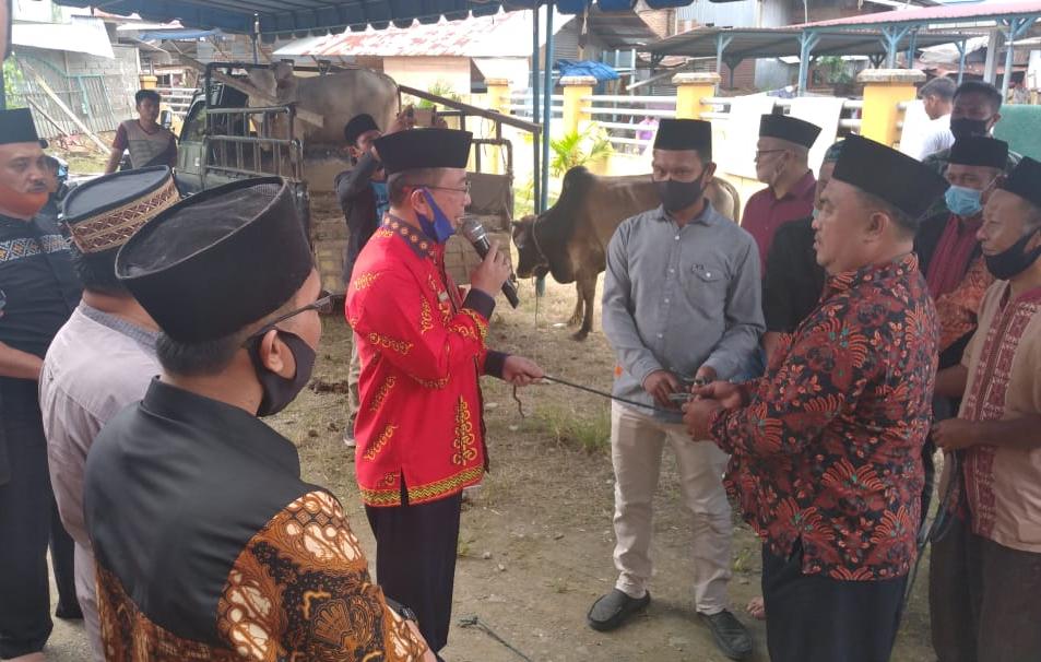 RADARINDONESIANEWS.COM, NIAS – Mewakili Bupati Nias, Sekretaris Daerah Kabupaten Nias Firman Yanus Larosa menyerahkan hewan Qurban Idul Adha 1441 H / 2020 M kepada Umat Muslim di wilayah Kabupaten Nias. Bertempat di Masjid Al Abrar, Kamis (30/7).