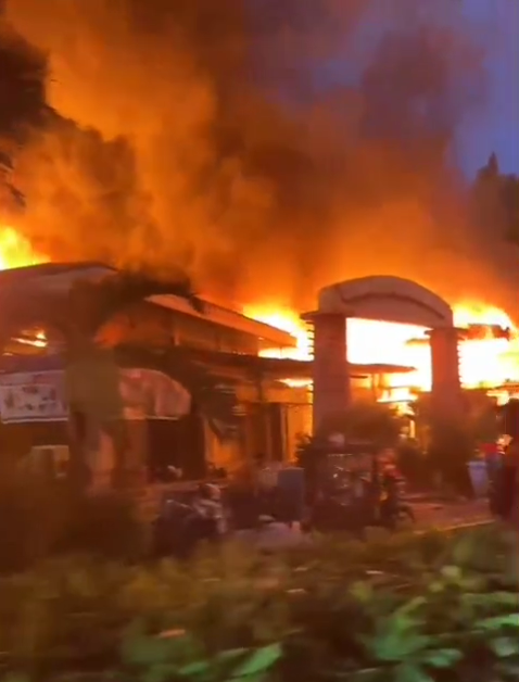 Dari video yang beredar, tampak api membumbung tinggi dengan asap tebal melahap kios yang berada di lokasi tersebut.