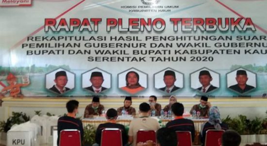 Berita Bengkulu KPU Kaur Tuntaskan Tahapan Rekapitulasi Pilgub & Pilbup Kaur Tahun 2020 Bengkulu, Daerah|December 27, 2020by Admin RIN RADARINDONESIANEWS.COM, KAUR -Komisi Pemilihan Umum (KPU) Kabupaten Kaur telah menuntaskan Peleno