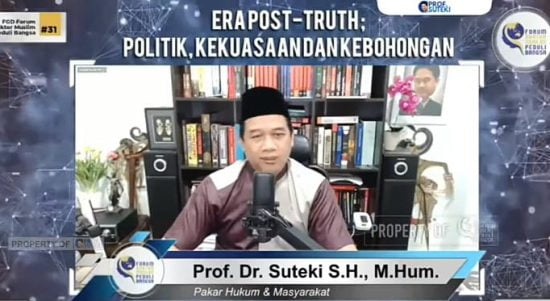 Liputan khusus Prof. Suteki Ungkap Bahaya Era Post-Truth Melalui Media Massa Liputan Khusus|June 5, 2022by radarnews RADARINDONESIANEWS.COM, JAKARTA – Pakar Hukum dan Masyarakat, Prof. Dr. Suteki, S.H,