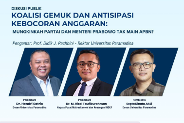 Hadir dalam diskusi itu para pembicara antara lain Dr Hendri Satrio, Dosen Universitas Paramadina, Dr. M Rizal Taufikurahman, Kepala Pusat Makroekonomi dan Keuangan Indef dan Sapta Dinata, M.Si, Dosen Universitas Paramadina.