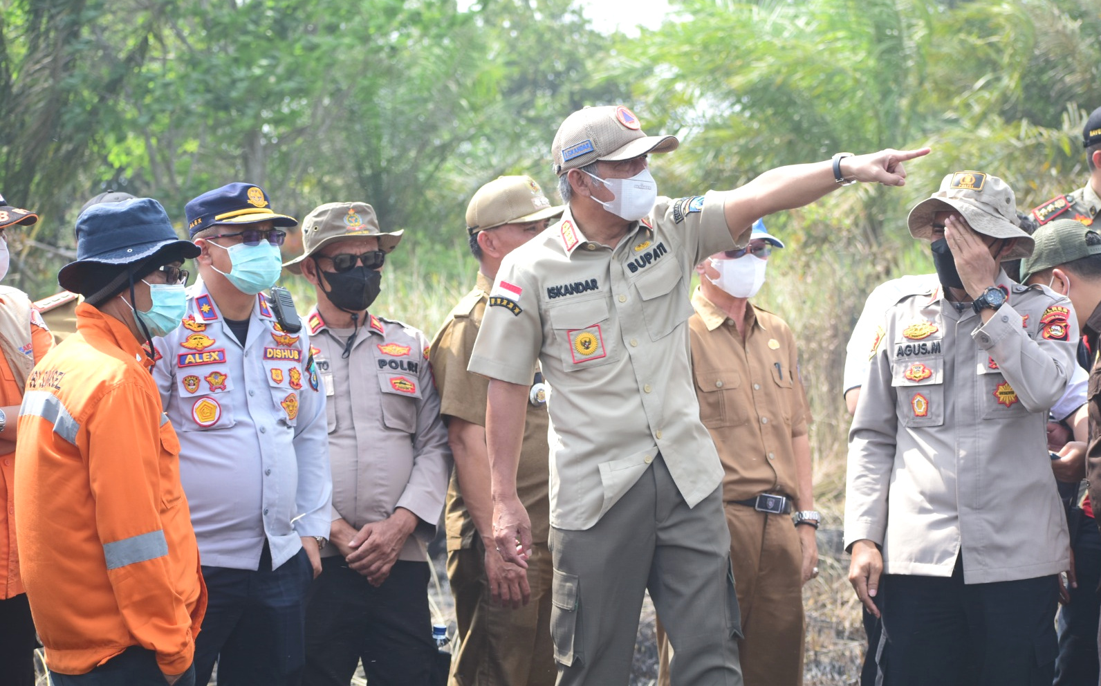 Bupati Ogan Komering Ilir, H. Iskandar, S.E meninjau langsung lokasi pada pada Selasa, (5/9/2023) mengapresiasi Langkah sigap tim gabungan pemadaman Karhutlah Kabupaten OKI.
