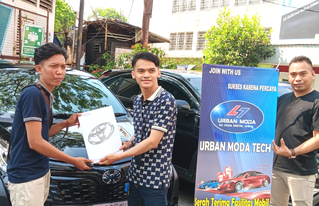 RADARINDONESIANEWS.COM, JAKARTA– Penyerahan dilakukan oleh Febri dari Toyota dan Andreas Siahaan, CEO Urban Moda kepada Maskur, salah seorang Agency Urban Moda di Glodok Plaza, Jl. Pinangsia, Jakarta, Minggu (9/6/2024).