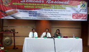 RADARINDONESIANEWS.COM, JAKARTA – Universitas Mpu Tantular (UMT) Jakarta gelar acara seminar nasional mengusung tajuk “Mengaktualisasikan Kembali Bhinneka Tunggal Ika Sebagai Jatidiri Bangsa Indonesia” di Aula Hiobadja lantai 8 Kampus Universitas Mpu Tantular di bilangan Cipinang, Jakarta Timur,  Rabu (12/7/ 2017).