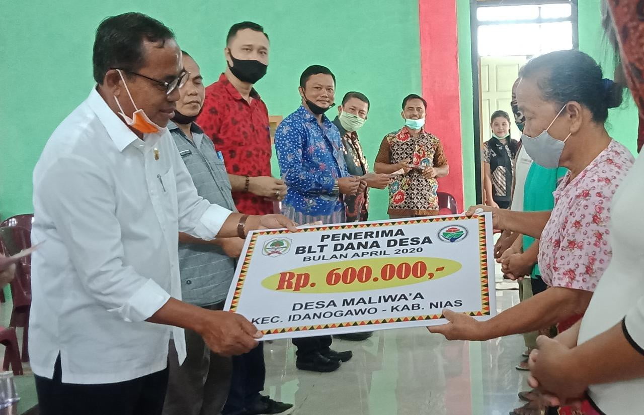 RADARINDONESIANEWS.COM, NIAS – Dalam rangka meringankan beban ekonomi masyarakat terdampak Covid-19. Wakil Bupati Nias, Arosokhi Waruwu serahkan secara simbolis Bantuan Langsung Tunai (BLT) Dana Desa tahap I (pertama) tahun anggaran 2020 kepada warga Desa Maliwa’a, Kecamatan Idanogawo, Kabupaten Nias.