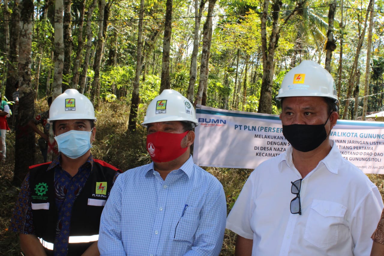 RADARINDONESIANEWS.COM, GUNUNGSITOLI – PT. PLN (Persero) UP3 Nias bersama Walikota Gunungsitoli resmikan pembangunan jaringan listrik dengan simbolis mendirikan tiang pertama di Desa Nazalou Lolowua dan Desa Niko’otano Dao, Kecamatan Alo’oa, Kota Gunungsitoli, Kamis (25/6).