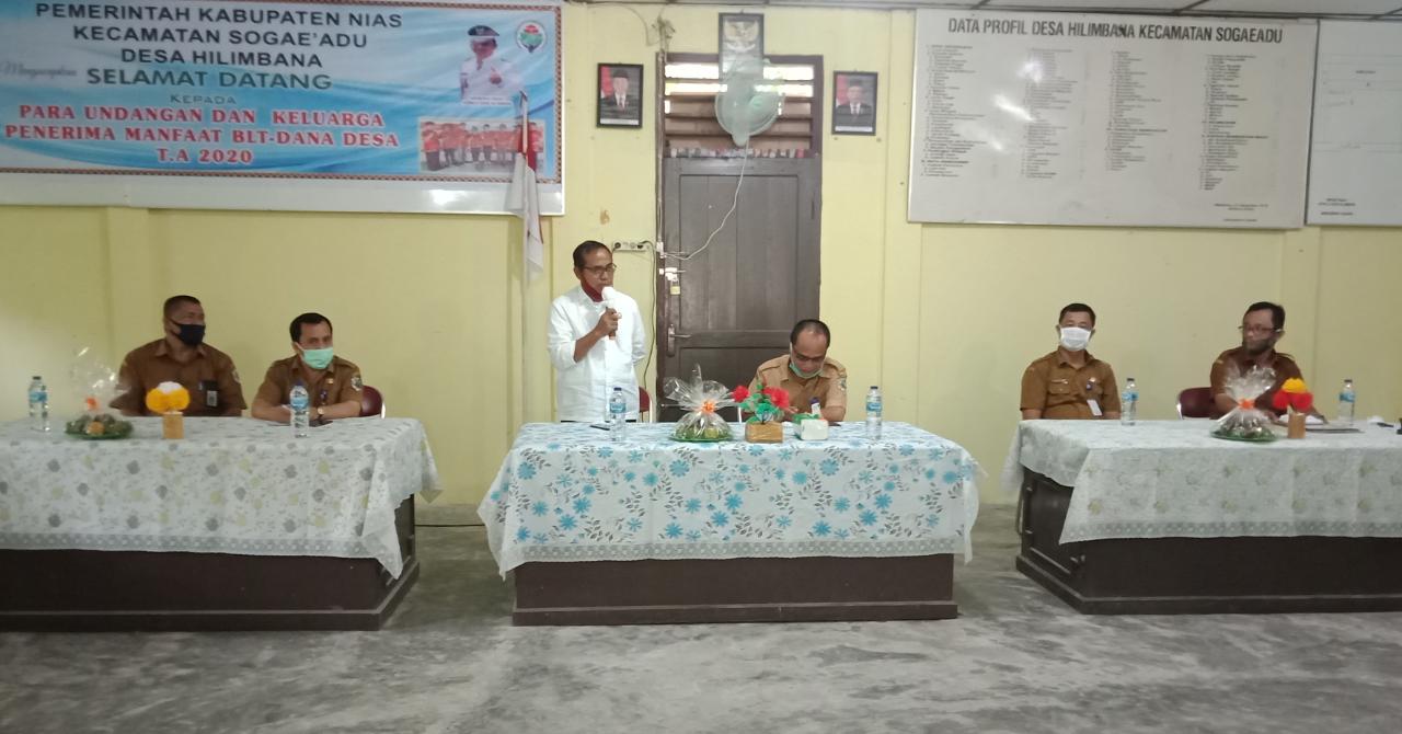 RADARINDONESIANEWS.COM, NIAS – Penyaluran Bantuan Langsung Tunai (BLT) Dana Desa tahap II (kedua) tahun anggaran 2020 di Desa Hilimbana, Kecamatan Sogae’adu, Kabupaten Nias diserahkan secara simbolis oleh Wakil Bupati Nias, Selasa (7/7).