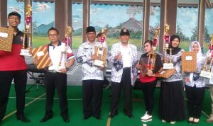 Para juara penerima tropi dan piagam bersama Ketua PGRI,Muslih SPd.MAcc Kab.Magelang. [Agung/radarindonesianews.com]